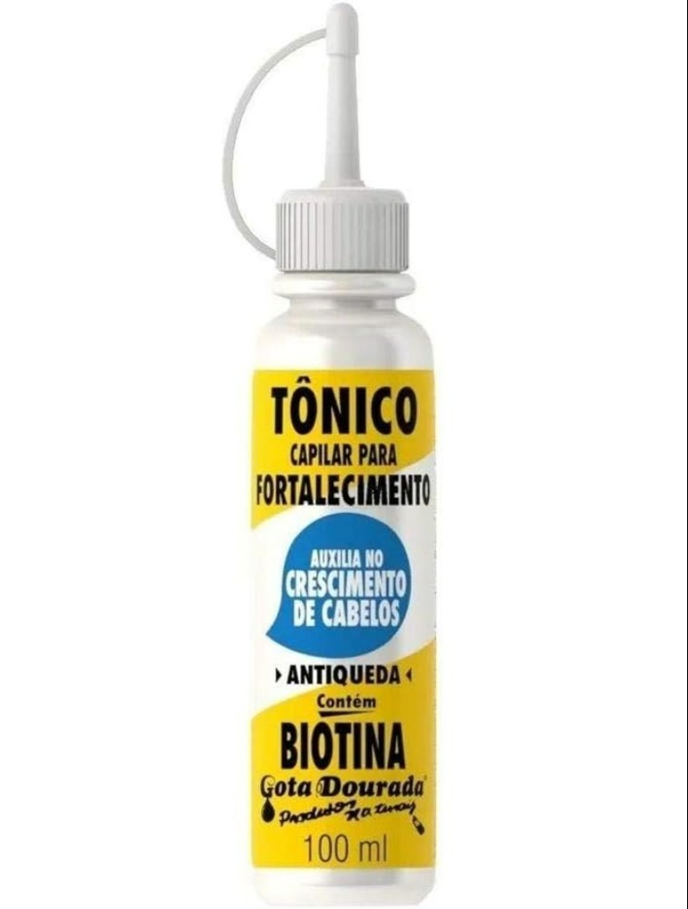 Tônico Capilar para Fortalecimento. Auxilia no crescimento saudável dos cabelos. Cabelos Fortes e Regenerados da Raiz às Pontas. Combate à Queda. O Legítimo Tônico da Gota Dourada, o Seu Cabelo Cresce e Aparece. Use a Linha Completa.