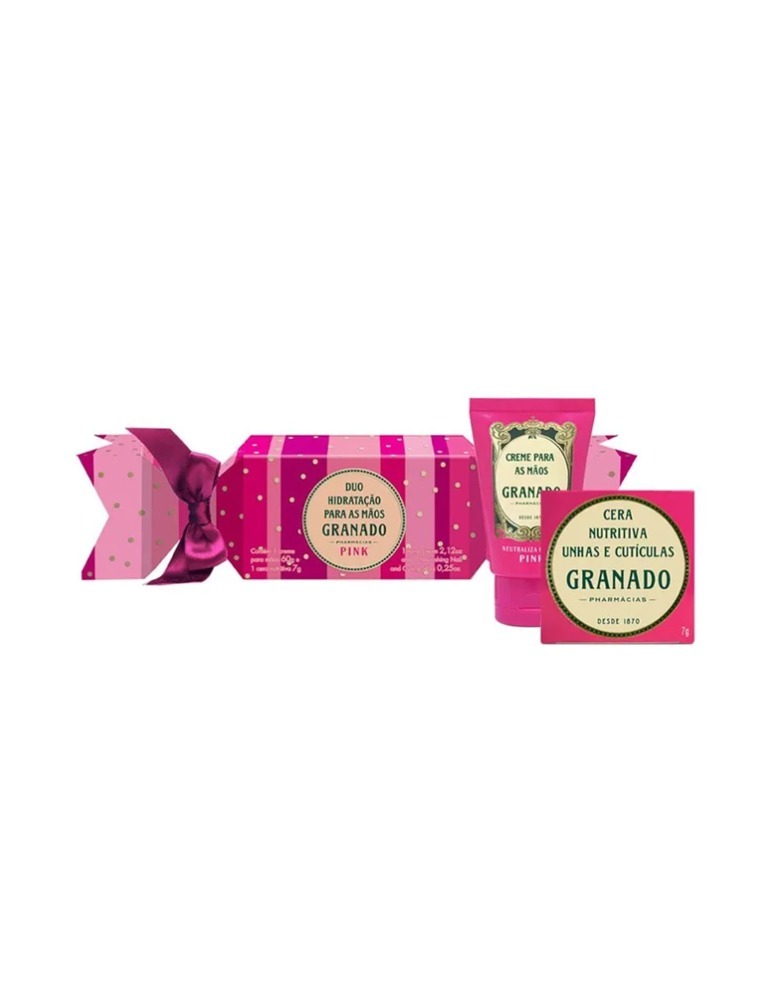 O Kit Bombom Granado Pink é a dupla ideal para hidratação e cuidado das suas mãos e unhas. O Kit conta com um creme para mãos e uma cera nutritiva que vão deixar sua pele protegida e mais perfumada.