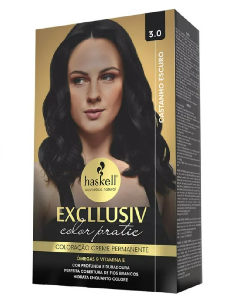 A coloração Excllusiv Color Pratic Haskell promove cor duradoura, alta cobertura e brilho intenso.