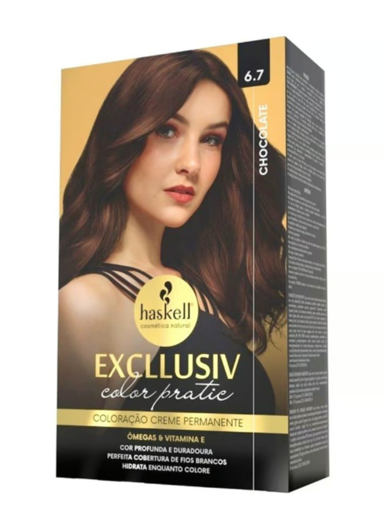 A coloração Excllusiv Color Pratic Haskell promove cor duradoura, alta cobertura e brilho intenso. Cor duradoura e alta cobertura; Mais praticidade e resultado; Excelente cobertura de fios brancos. Possui complexo de ômega 3, 6 e 7 e vitamina E, que protege os fios durante o processo de coloração