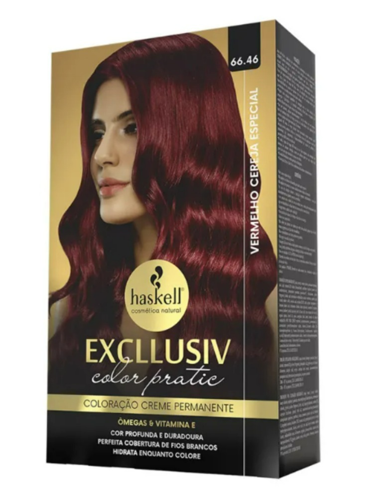 A coloração Excllusiv Color Pratic Haskell promove cor duradoura, alta cobertura e brilho intenso.