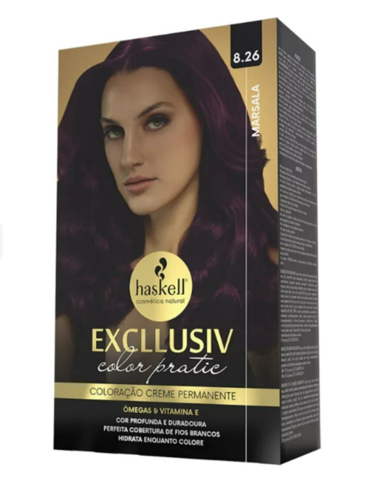 A coloração Excllusiv Color Pratic Haskell promove cor duradoura, alta cobertura e brilho intenso.