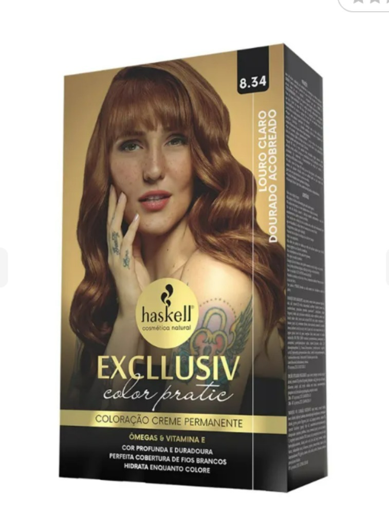A coloração Excllusiv Color Pratic Haskell promove cor duradoura, alta cobertura e brilho intenso.