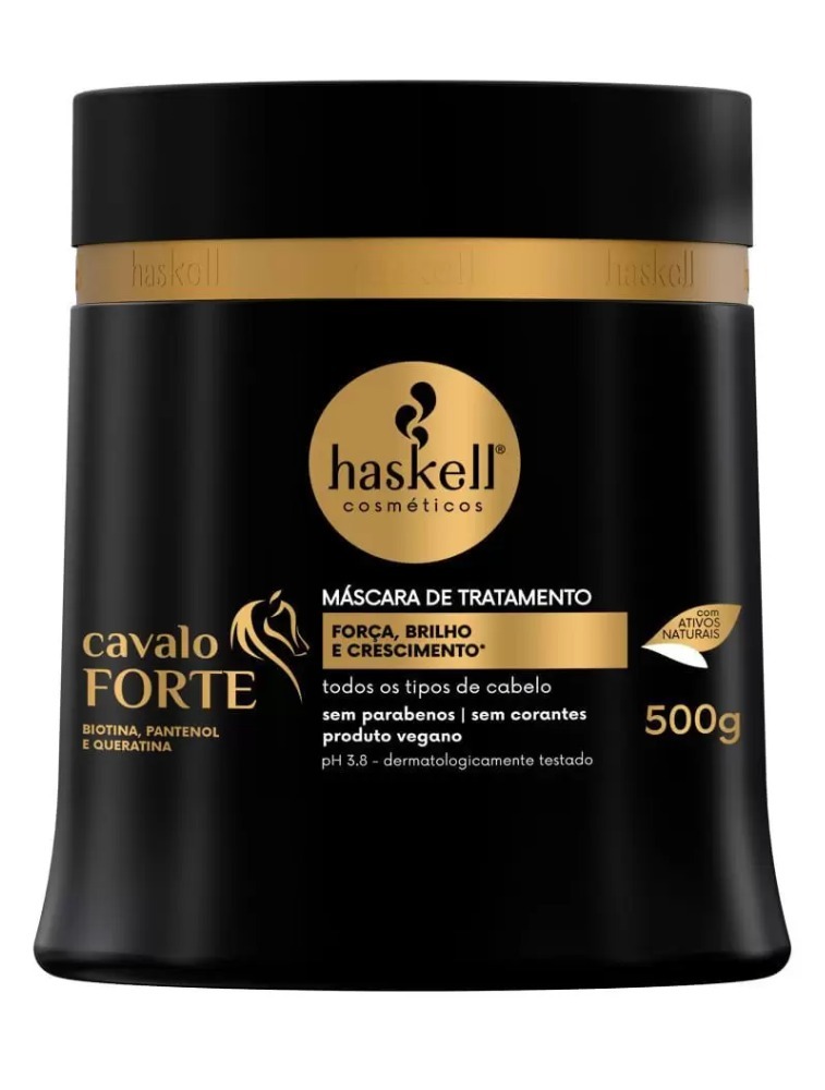 Fortaleça seus cabelos e estimule o crescimento com a poderosa Máscara Capilar Haskell Cavalo Forte. Tenha fios mais fortes, saudáveis e deslumbrantes em cada aplicação.