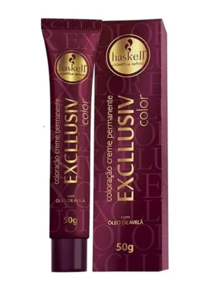 TA Coloração Creme Permanente Excllusiv Color Haskell promove cor profunda, duradoura, brilhante e uniforme da raiz às pontas, além de uma perfeita cobertura dos cabelos brancos. Enriquecida com óleo de avelã, proporciona hidratação intensa, nutrição e toque aveludado.