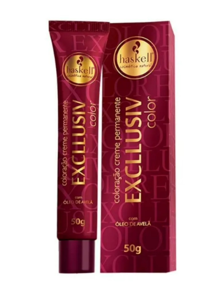 Descrição sobre: Coloração Haskell Exclusiv Color Coloração elaborada com ativos que promovem durabilidade da cor, brilho e nutrição. Possui o óleo de avelã um ativo com propriedades nutritivas e hidratantes, evitando possíveis danos que são comuns em processos químicos. Tem 100% de cobertura de brancos, cores vibrantes e intensas. Modo de uso Leia atentamente as instruções descritas na embalagem; Recomenda-se a utilização com o auxílio de um profissional; Indica-se a realização do teste de mechas, para evitar qualquer complicação médica; Em caso de irritação no couro cabeludo, consulte um profissional para descartar qualquer alergia aos componentes da formulação; Não aplicar o produto em menores de 15 anos.