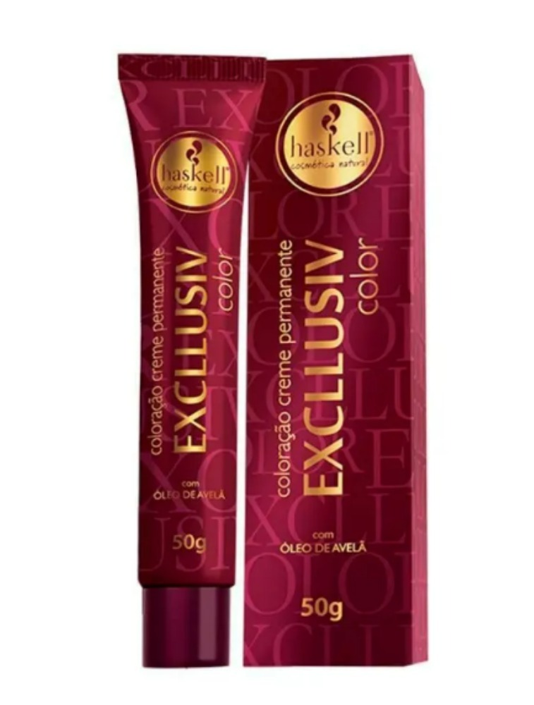 Descrição sobre: Coloração Haskell Exclusiv Color Coloração elaborada com ativos que promovem durabilidade da cor, brilho e nutrição. Possui o óleo de avelã um ativo com propriedades nutritivas e hidratantes, evitando possíveis danos que são comuns em processos químicos. Tem 100% de cobertura de brancos, cores vibrantes e intensas. Modo de uso Leia atentamente as instruções descritas na embalagem; Recomenda-se a utilização com o auxílio de um profissional; Indica-se a realização do teste de mechas, para evitar qualquer complicação médica; Em caso de irritação no couro cabeludo, consulte um profissional para descartar qualquer alergia aos componentes da formulação; Não aplicar o produto em menores de 15 anos.