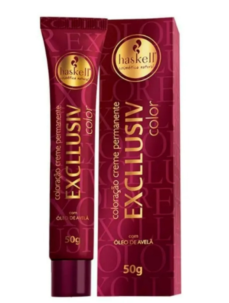 Descrição sobre: Coloração Haskell Exclusiv Color Coloração elaborada com ativos que promovem durabilidade da cor, brilho e nutrição. Possui o óleo de avelã um ativo com propriedades nutritivas e hidratantes, evitando possíveis danos que são comuns em processos químicos. Tem 100% de cobertura de brancos, cores vibrantes e intensas. Modo de uso Leia atentamente as instruções descritas na embalagem; Recomenda-se a utilização com o auxílio de um profissional; Indica-se a realização do teste de mechas, para evitar qualquer complicação médica; Em caso de irritação no couro cabeludo, consulte um profissional para descartar qualquer alergia aos componentes da formulação; Não aplicar o produto em menores de 15 anos.