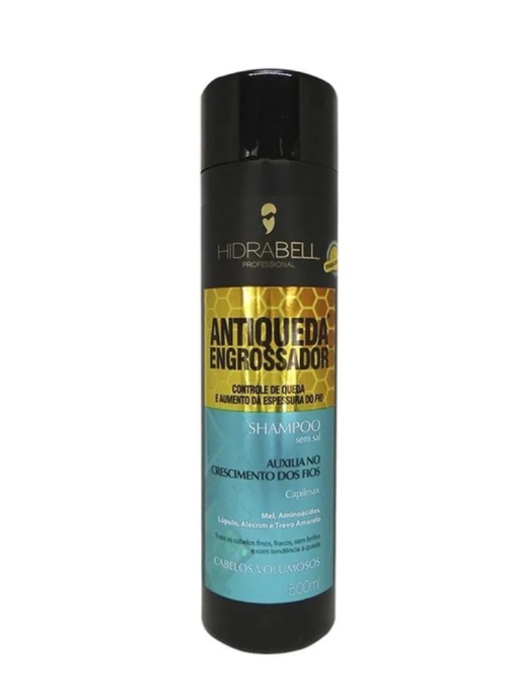 O Shampoo Antiqueda Engrossador Hidrabell é um produto elaborado para devolver aos cabelos mais resistencia, possibilita reduzir a queda por quebra, trazendo vivacidade aos fios. Ele age de forma única, sua fórmula possui ativos que estimulam o fio capilar, regenerando a raiz e fortificando a estrutura capilar, aumentando a espessura dos fios de forma rápida sem deixar os fios porosos ou danificados, além de proteger e limpar o couro cabeludo adequadamente. Cabelos mais fortes e revitalizados! Aposte na linha completa Antiqueda Hidrabell para ter resultados ainda mais surpreendentes! Principais Ativos: • Capilmax: Grande poder Antioxidante, revitaliza e Fortalece fios, aumenta a espessura e estimula o crescimento; • Enriquecida com Mel: Hidrata e nutri os cabelos; • Aminoácidos: Recupera os fios e fortifica; • Lúpulo: Possui ação Adstringente que reduz a caspa e a queda; • Alecrim: limpa profundamente; • Trevo Amarelo. Controla a queda, aumenta a espessura dos cabelos. Indicado a cabelos enfraquecido, finos e quebradiços. Sugestão de uso: Aplique uma quantidade satisfatória do produto nos cabelos molhados, massageando suavemente, deixe agir com alguns minutos e enxague, caso veja necessidade, reaplique o produto. Resultado: Cabelos fortificados, super brilhantes, com queda e quebra reduzida, simplesmente perfeitos! Benefícios: • Revigora a estrutura capilar • Reduz queda dos fios • Aumenta a espessura do fio, deixando-o volumoso • Auxilia no crescimento do fio Composição: A formula possui os ativos: Capilmax, Mel, Aminoácidos, Lúpulo, Alecrim e Trevo Amarelo. Não possui formol. Cruelty free significa “Livre de Crueldade” e se aplica aos produtos que são livres de testes e crueldade em animais.