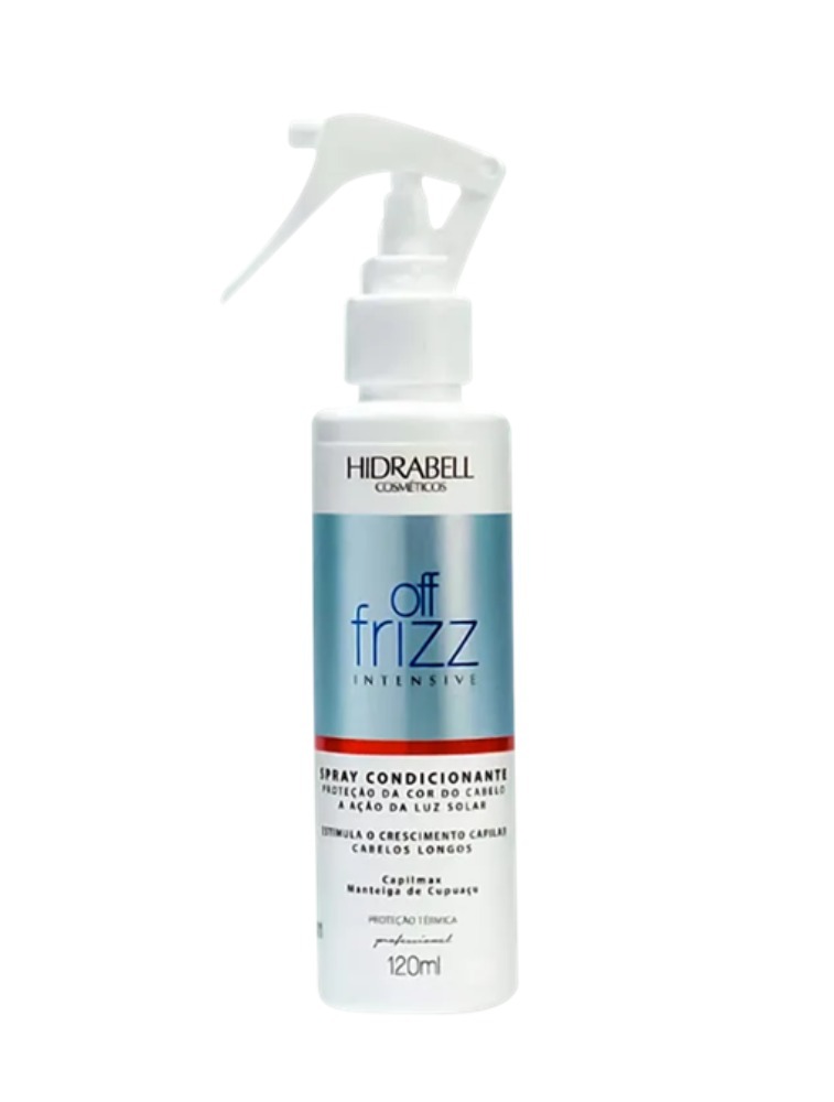 Spray capilar para todos os tipos de cabelos, principalmente com frizz. Hidrabell Off Frizz alinha e hidrata os fios.