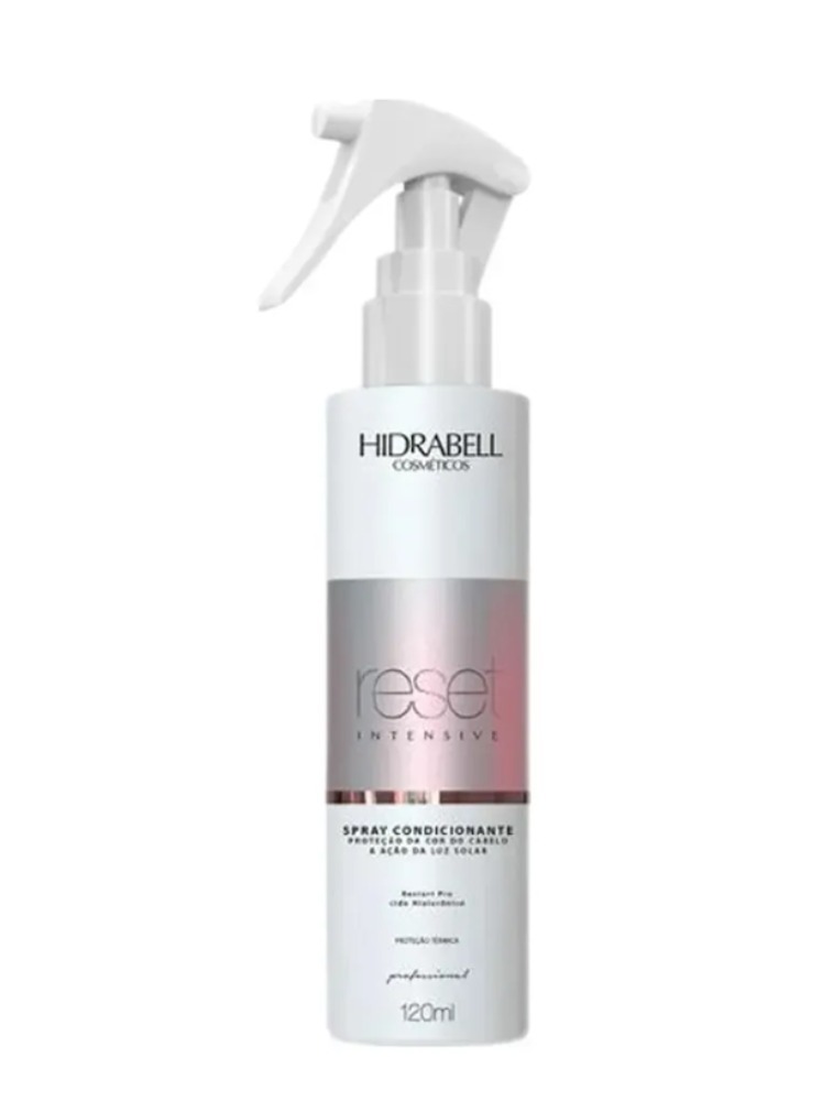 O Spray Condicionante Reset Intensive Hidrabell protege a cor do cabelo contra a luz solar ou do calor de eletrônicos, recuperando e reparando os danos. Sua fórmula contém excelentes e inovadoras matérias-primas para redefinir a estrutura dos fios, reparando os danos existentes nas fibras capilares. Protege os cabelos das agressões químicas como colorações, descolorações, definitiva e alisamentos. O resultado será seus cabelos mais fortes, hidratados, maleáveis, revitalizados e recuperados.Indicado para todos os tipos de cabelos, principalmente os quimicamente tratados. Cruelty free.