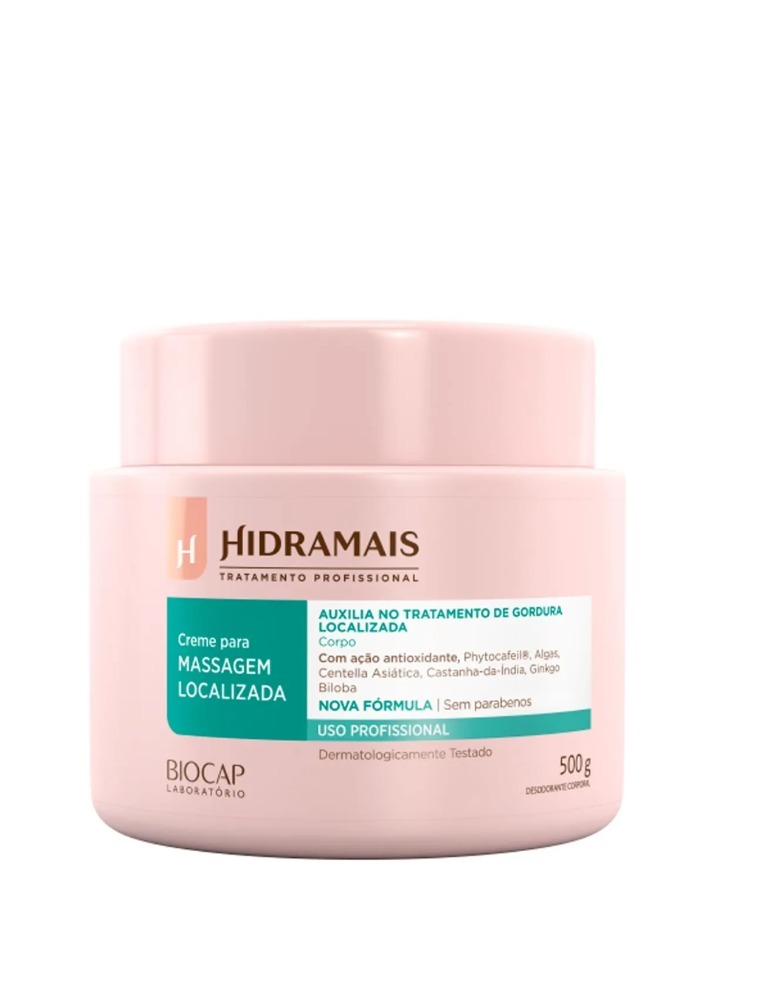 O Creme para Massagem Localizada Hidramais possui uma alta concentração de ativos com ações anti-inflamatórias, antioxidante e redutora. Indicado para tratamentos estéticos de remodelagem corporal. Produto sem teste em animais e dermatologicamente testado, age ativando a microcirculação, prevenindo o aparecimento de estrias e varizes, além de eliminar a retenção de líquido. Com uma espátula, retire o produto e aplique na pele, massageando até a sua completa absorção.