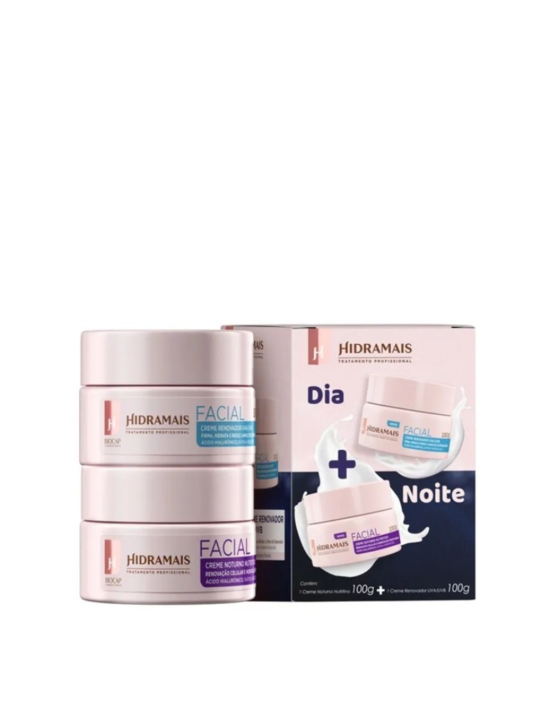 Rico em Colágeno e Vitamina E, que previnem o envelhecimento facial e possuem ação antioxidante. O kit conta também com o Creme Noturno Nutritivo rico em D-pantenol e composto por Ácido Hialurônico que auxiliam na renovação da pele, acalmando-a dos efeitos sofridos durante o dia, realizando a hidratação profunda do rosto. São 24 horas de proteção facial!