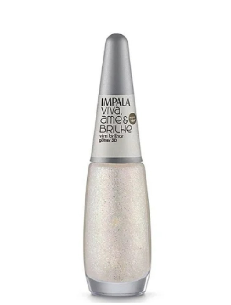 A Coleção de Esmaltes Impala Viva Ame e Brilhe traz cores clássicas com partículas de glitter holográficas que ressaltam um brilho único e agora com mais Cinco novas tonalidades, lançamento para outono-inverno 2024, como essa cor de fundo transparente realçando os brilhos do glitter (Vim Brilhar - 936).