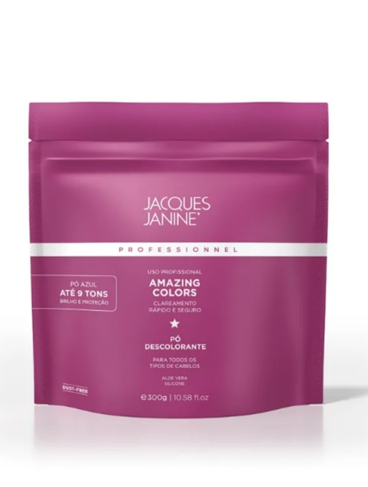 O Pó Descolorante Amazing Colors é um Clareador Que funciona de forma rápida, uniforme e progressiva, perfeito para clareamento total, mechas, reflexos, balayages e luzes nos cabelos. Fornece máxima efetividade com segurança para atingir uma descoloração de até 9 tons. Os ativos aloe e vera e silicone formam uma película protetora em volta dos fios deixando os cabelos fáceis de pentear, macios e com brilho. Sua coloração azul ajuda na neutralização dos efeitos amarelados dos fios.
