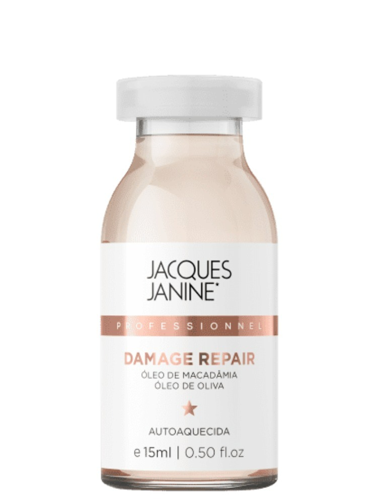 Ampola de tratamento para cabelos com química. Jacques Janine Insta Repair Ampola repara os fios pré e pós química com efeito anti-frizz.