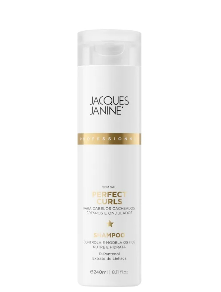 Shampoo para cabelos cacheados, crespos e ondulados. Jacques Janine Professionnel Cachos Perfeitos Shampoo define, controla o frizz, nutre e hidrata para deixar uma aparência saudável e sob controle.