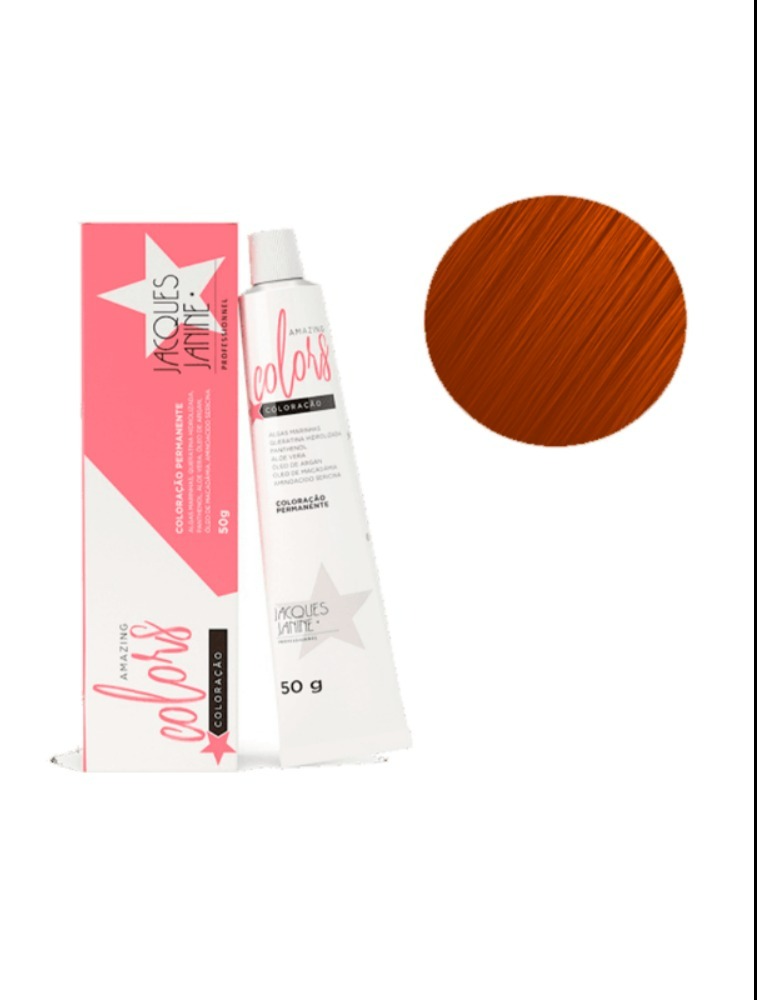 A coloração Amazing Colors 7.4 (Louro Médio Cobre) de Jacques Janine Professionnel garante uma cobertura completa dos fios brancos, sem efeito opaco. Sua fórmula foi desenvolvida (especialmente para uso profissional) com um sistema de coloração seletiva, que intensifica a ação e gera resultado uniforme, enquanto hidrata os fios e devolve o brilho à fibra capilar.