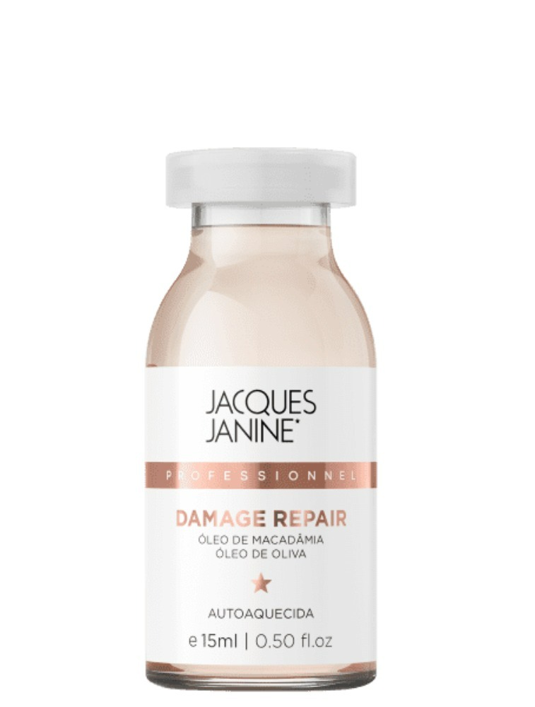 Ampola de tratamento para cabelos com química. Jacques Janine Insta Repair Ampola repara os fios pré e pós química com efeito anti-frizz.