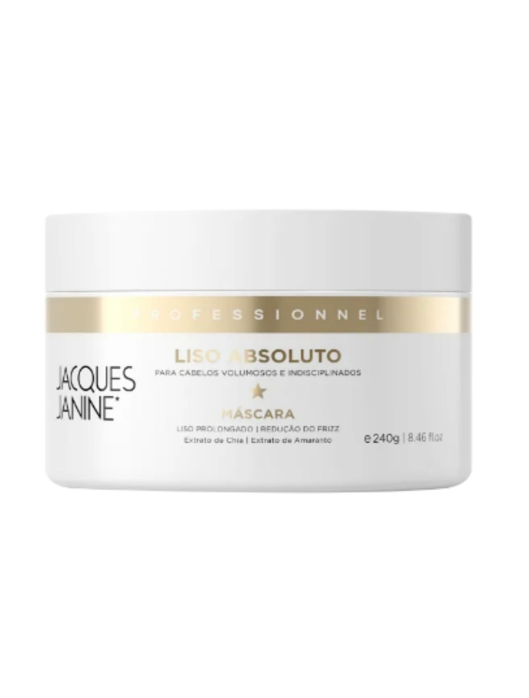 Máscara para cabelos volumosos e indisciplinados. Jacques Janine Professionnel Liso Absoluto Máscara possui ação antifrizz que elimina os fios com volume excessivo e prolonga o efeito liso.