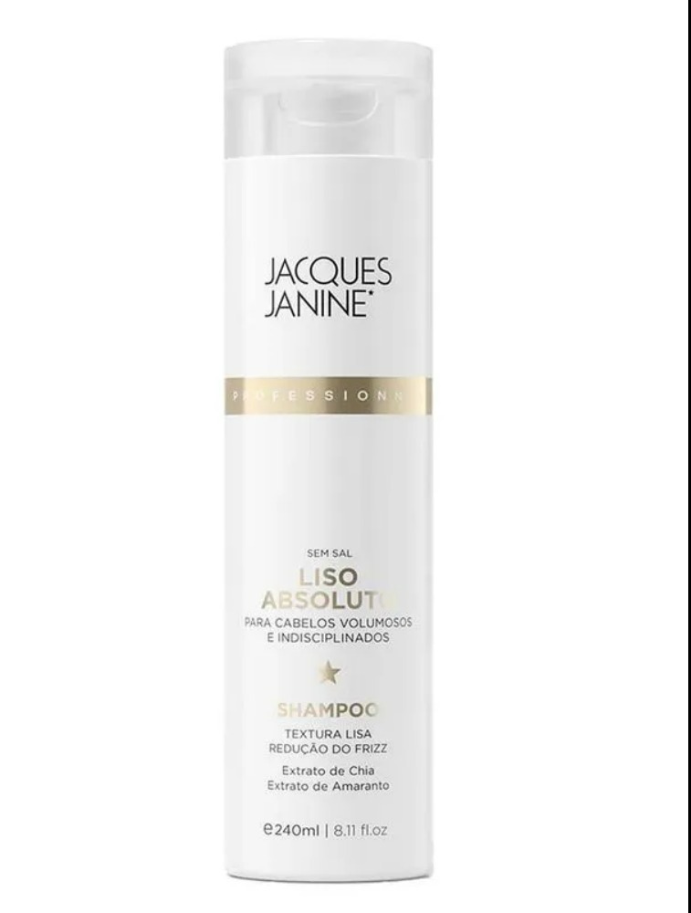 O Shampoo Liso Absoluto possui fórmula suave e hidratante. sua espuma cremosa limpa e promove realinhamento e textura mais lisa da fibra, deixando os cabelos macios e disciplinados. enriquecido com extrato de chia, linhaça e amaranto, prolonga o alisamento dos fios formando um filme protetor que sela e remove o frizz, trazendo assim um brilho diferenciado. Modo de uso: Aplique no cabelo molhado e massageie suavemente o couro cabeludo com a ponta dos dedos até obter espuma. Enxágue. Repita se necessário. Precauções: Uso Externo. Mantenha fora do alcance das crianças. Em caso de alergia a qualquer um dos componentes da fórmula, suspenda o uso. Sobre a marca: A história da Jacques Janine começou em 1958, no lançamento do primeiro salão. Desde então, a marca se tornou referência em qualidade de serviços de beleza com profissionais renomados no Brasil e no mundo. O pioneirismo sempre fez parte do DNA da marca e foi fundamental para que atingissem o patamar e o prestígio de se tornar a maior rede de salões da América Latina. Os produtos são fabricados com ingredientes premium nas fórmulas, com a mais alta tecnologia, qualidade em desenvolvimento e fabricação de cosméticos. Com real expertise, traz o que existe de mais moderno utilizado no salão, para sua casa