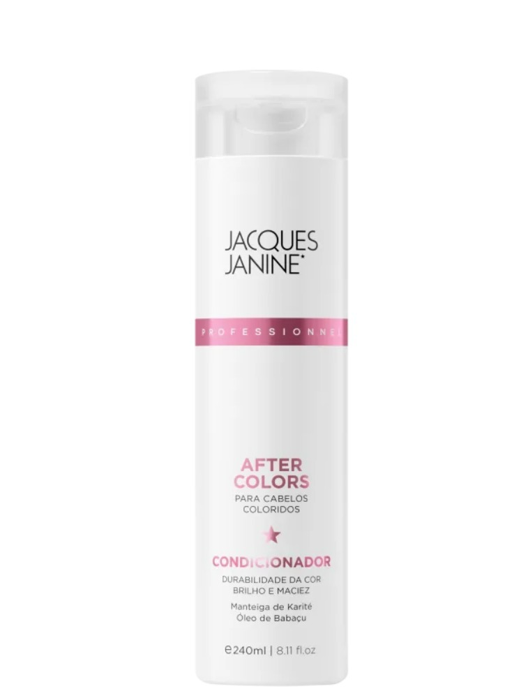 Condicionador Jacques Janine Pós-Coloração age na fibra dos fios para garantir muita maciez e repor toda a hidratação. Impede a perda de pigmentos e o desgaste da cor com ativos antioxidantes.