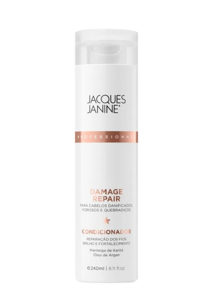 Condicionador para cabelos quimicamente tratados e danificados. Jacques Janine Professionnel Reparação de Danos desembaraça enquanto restaura os fios e condiciona.