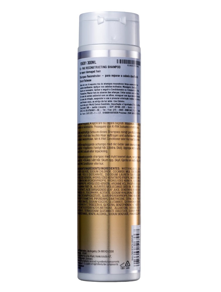 Instruções de Uso: Aplique uma pequena quantidade do Shampoo Joico K-PAK To Repair Damage Hair Smart Release nos cabelos molhados e massageie suavemente o couro cabeludo e os fios. Enxágue bem e repita, se necessário. Para obter melhores resultados, siga com o Condicionador Joico K-PAK To Repair Damage Hair Smart Release e outros produtos da linha Joico K-PAK, conforme recomendado.