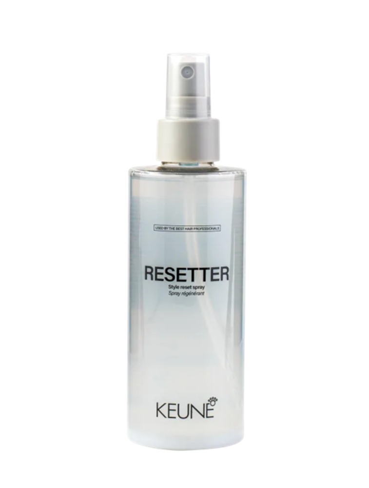 Spray redefinidor de penteado. Keune Style Resetter conta com proteção térmica e fórmula que estimula a saúde do couro cabeludo.
