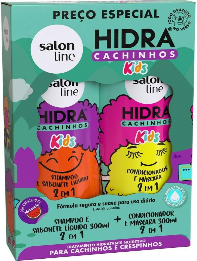 O Kit Hidra Cachinhos Kids é composto por Shampoo, que pode ser usado como sabonete líquido, e Condicionador, que pode ser usado como máscara de hidratação. Juntos, eles proporcionam cachinhos definidos, nutridos e sem frizz.