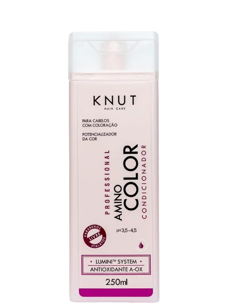 Condicionador para cabelos coloridos. KNUT Amino Color Condicionador evita o desbotamento, intensifica a cor e controla fios com volume excessivo.