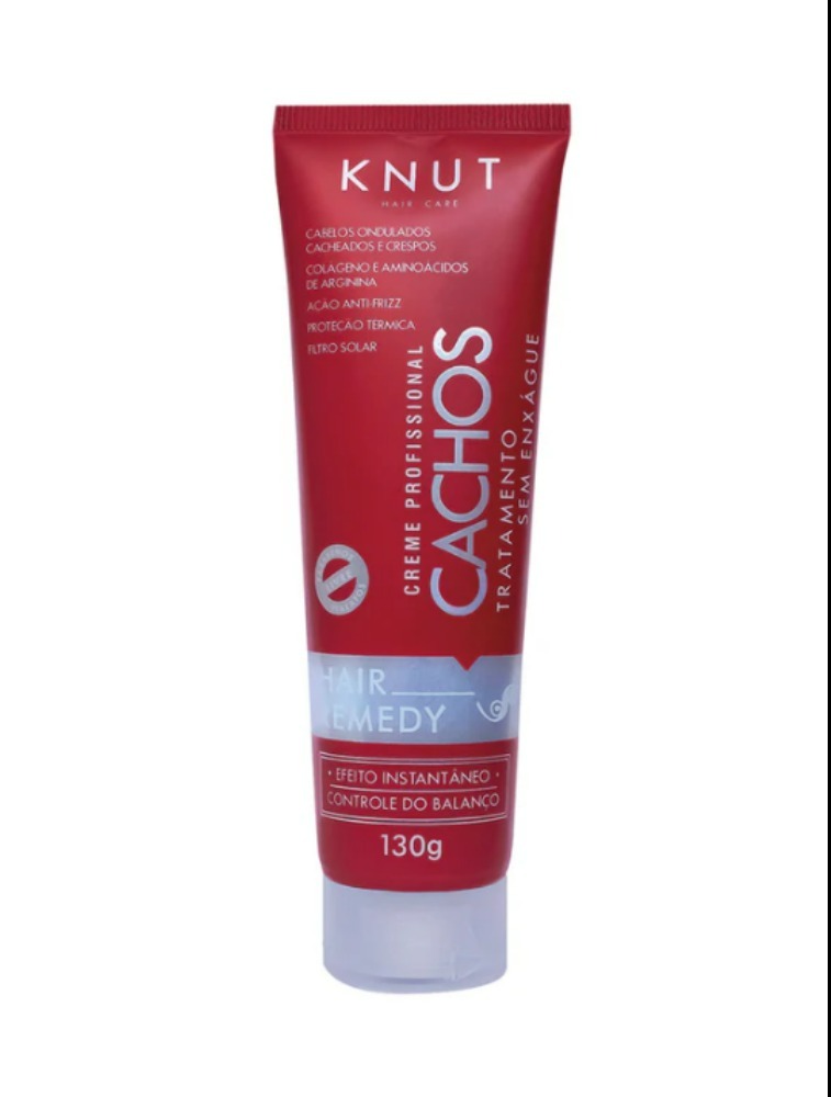 Creme de Tratamento sem enxágue, desenvolvido a partir da combinação dos principais ativos da linha KNUT Cachos e da avançada tecnologia de KNUT Hair Remedy, resultando em cachos definidos e com controle do balanço!