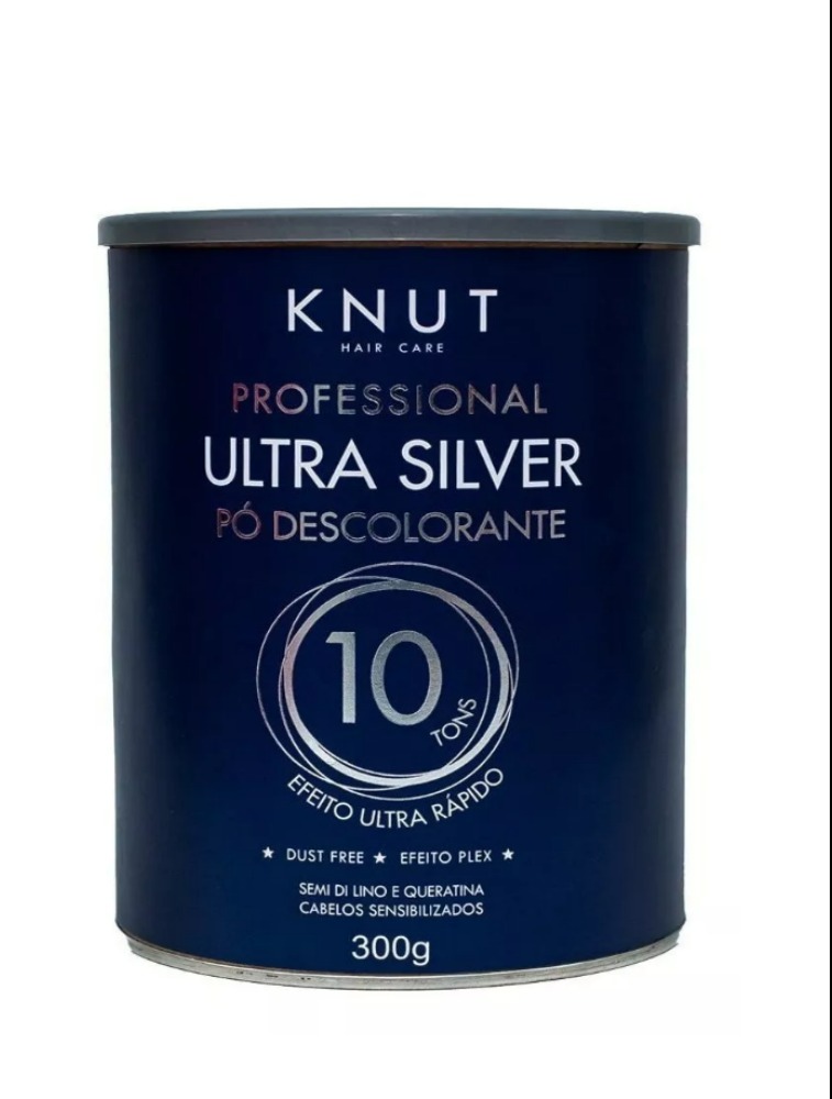 KNUT Silver, a linha de matizadores preferida das loiras mais poderosas do Brasil, agora estará presente desde os primeiros momentos do processo de descoloração, com a qualidade que você já conhece e o resultado impecável que você ama. O Pó Descolorante KNUT Ultra Silver 300g é um clareador que oferece máxima segurança e flexibilidade. Efeito nítido de descoloração até os níveis mais claros (clareia até 10 tons). Descoloração controlada. Combinação de agentes descolorantes e substâncias de tratamento cosmético como aminoácidos que penetram na fibra capilar promovendo brilho e resistência aos fios. Descolorante capilar para todas as técnicas de aplicação.