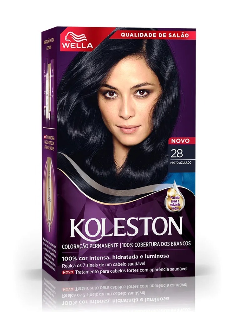 Desenvolvida para quem procura uma coloração permanente e de cor intensa e duradora, a Coloração Creme Koleston Preto Azulado 28, da Wella, oferece 100% da cobertura dos fios brancos, graças a tecnologia resistente à água. Seu exclusivo Tratamento Gloss Intenso deixa o cabelo com mais brilho, maciez e ajuda a manter a intensidade da cor. Além disso, o Kit Koleston vem com o Reativador de Cor que deposita mais pigmentos no seu cabelo para manter a cor mesmo depois de 15 dias. A tintura é de fácil aplicação e você pode tingir seus fios sozinha em casa.