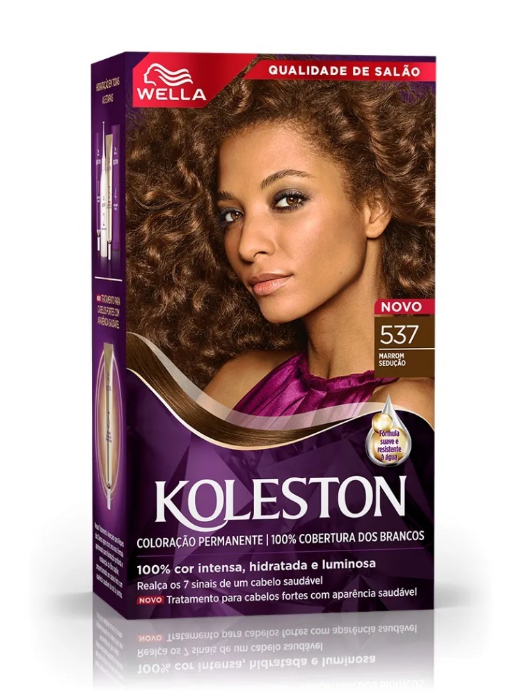 A Tinta de Cabelo Koleston Marrom sedução 537 é a coloração permanente da Wella que te dá cor intensa e duradoura, graças a sua tecnologia resistente à água. Oferece perfeita cobertura dos fios brancos, além de hidratar tão intensamente quanto colore. Seu exclusivo Tratamento Gloss Intenso deixa seu cabelo com mais brilho e maciez e ajuda a manter a intensidade da cor. O kit Koleston também vem com o Reativador de cor que deposita mais pigmentos no seu cabelo para ajudar a reativar a cor depois de 15 dias. É uma coloração fácil de aplicar em casa, até mesmo para aquelas que não possuem muita habilidade na hora de colorir os fios sozinha.