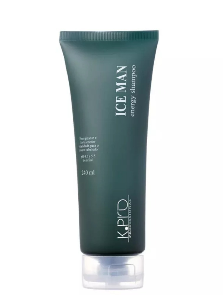 Shampoo masculino energizante para todos os tipos de cabelo. K.Pro Ice Man Energy Shampoo equilibra e trata o couro cabeludo.