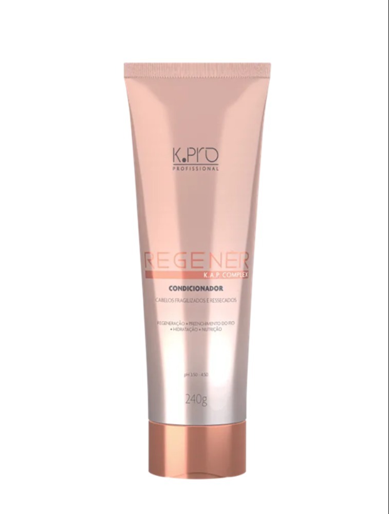 Condicionador K.Pro Regenér garante cutículas totalmente seladas e suaves para devolver o brilho, sedosidade e eliminar o frizz. Além disso, enriquecido com ácido hialurônico, ele preenche os fios que estão porosos, opacos e ásperos para que fiquem macios, maleáveis, com movimento e luminosos.