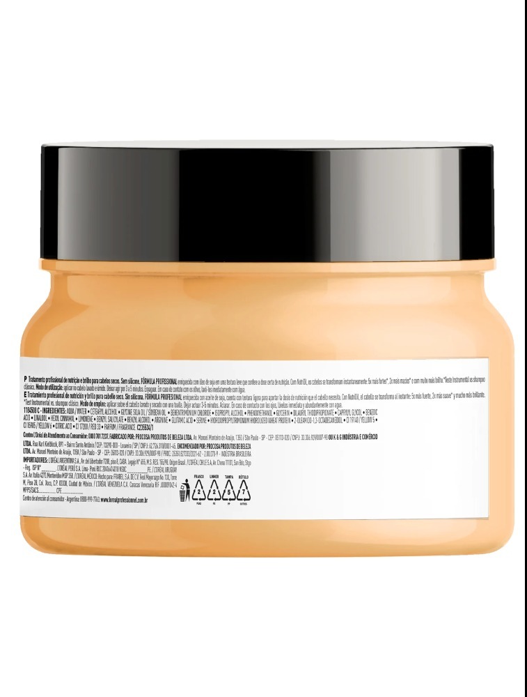 Modo de Uso: Após lavar os cabelos com o shampoo NutriOil da L'Oréal Professionnel Serie Expert, aplique a máscara uniformemente nos cabelos úmidos, do comprimento às pontas, massageando suavemente. Deixe agir por 3 a 5 minutos e enxágue abundantemente. Para melhores resultados, use a máscara de 1 a 2 vezes por semana ou conforme necessário.