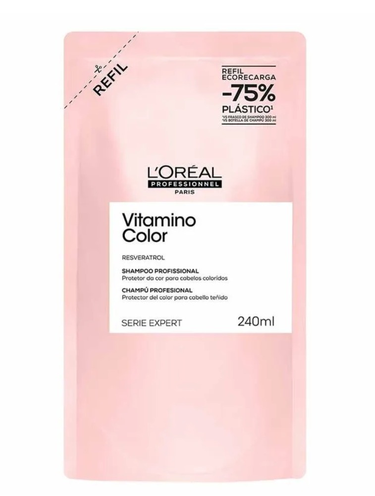 Refil L'oréal Profissionnel Resveratrol Vitamino Color Shampoo O que é e para que serve? O L'Oréal Professionnel Vitamino Color Shampoo Refil é um tratamento de limpeza especialmente formulado para cabelos coloridos. Este shampoo profissional prolonga a duração da cor por até 8 semanas, mantendo seus fios vibrantes e radiantes. Com uma fórmula avançada que inclui Resveratrol, um poderoso antioxidante inspirado em produtos de skincare, ele oferece proteção imbatível contra o desbotamento da cor enquanto proporciona brilho intenso ao cabelo. Quais os benefícios do Refil L'oréal Profissionnel Resveratrol Vitamino Color Shampoo? - Prolonga a Duração da Corpor até 8 semanas; - Proporciona 6 vezes mais brilho aos fios, deixando-os com uma aparência saudável e radiante; - Limpa delicadamente sem agredir os fios ou remover excessivamente as tinturas; - Deixa o cabelo leve, maleável e incrivelmente macio ao toque; - Proteção Antioxidante; - Sustentabilidade Ambiental. Modo de uso: 1. Molhe bem os cabelos antes da aplicação do produto; 2. Aplique uma quantidade adequada (aproximadamente 10 ml) do L'Oréal Professionnel Vitamino Color Shampoo Refil nas mãos; 3. Massageie suavemente sobre o couro cabeludo e distribua pelo comprimento dos fios até criar espuma abundante; 4. Enxágue completamente com água morna ou fria para selar as cutículas capilares; 5. Para resultados otimizados, utilize juntamente com a máscara de tratamento Vitamino Color e o spray leave-in 10 em 1. Qual é a principal função do Resveratrol no L'Oréal Professionnel Vitamino Color Shampoo? O Resveratrol presente na fórmula deste shampoo atua principalmente como um potente antioxidante que protege os fios dos danos causados pelos radicais livres. Inspirado nos melhores ingredientes usados em skincare facial, ele ajuda não só a manter a vivacidade da cor mas também melhora significativamente a saúde geral do seu cabelo proporcionando força extra contra agressões externas tais como poluição ambiental UV rays and heat styling tools.