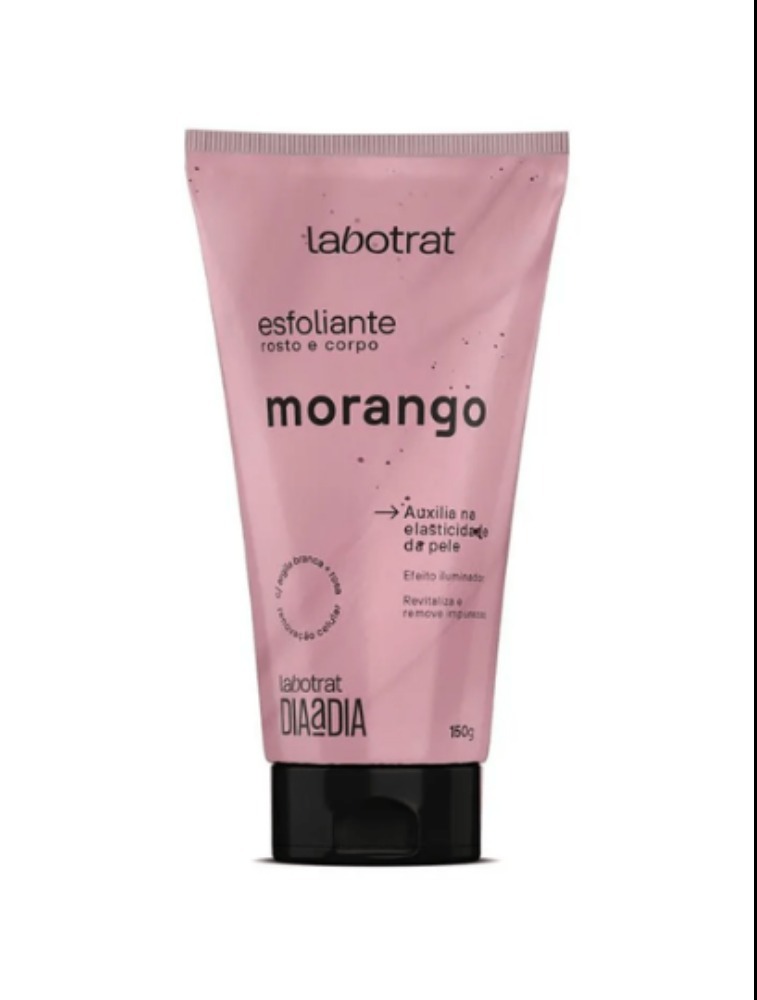 O esfoliante morango labotrat possui extrato natural da fruta. que torna sua pele muito mais aveludada. suas propriedades antioxidantes repõem a vitamica C, que renova a pele e seu aspecto. Indicado para pessoas com sinais de envelhecimento, pele fina e com cicatrizes.