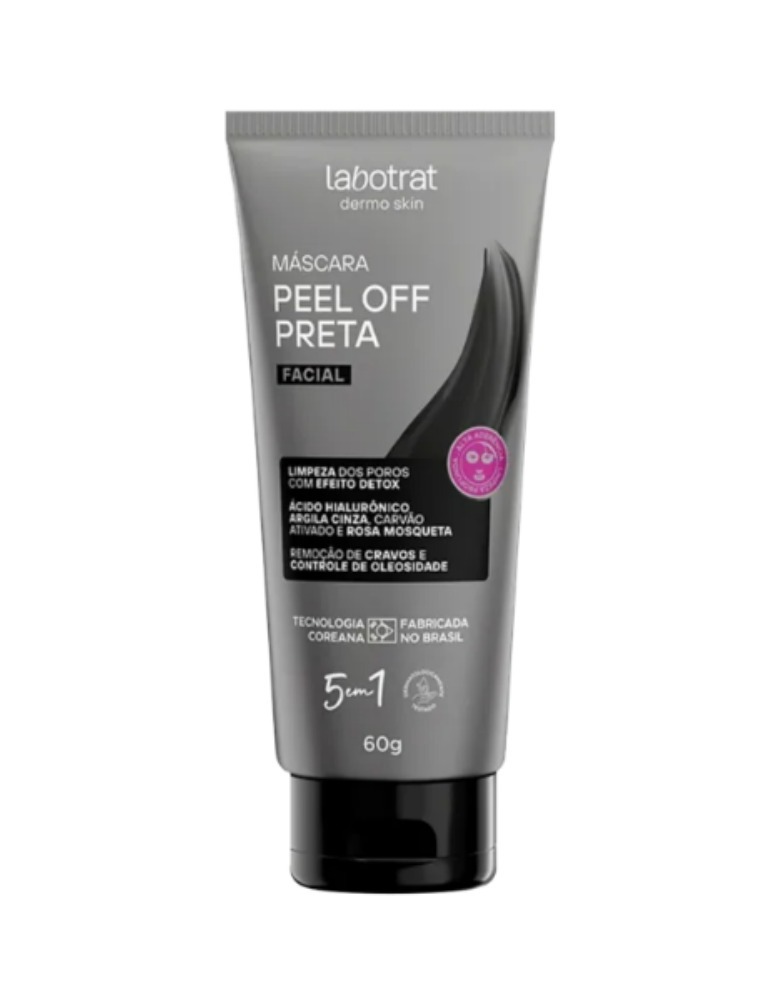 A Máscara Facial Peel Off Labotrat - Preta é a aliada perfeita para deixar sua rotina de skincare ainda mais satisfatória. Com efeito Detox, promove a limpeza dos poros, além de remover os cravos e controlar a oleosidade. Sua tecnologia coreana conta com poderosos ativos que garantem uma pele firme, macia, revitalizada e nutrida. Enriquecida com a combinação de Ácido Hialurônico, Argila Cinza, Carvão Ativado e Óleo de Rosa Mosqueta. Absorve a oleosidade e as impurezas da pele, como células mortas e resíduos de maquiagem.