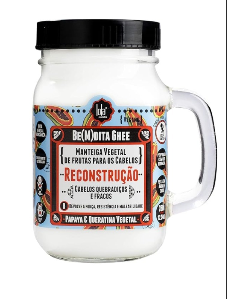 Be(m) Dita Ghee - Manteiga vegetal de frutas, vegana, Reconstrução. com Papaia e queratina vegetal. Repoem a massa perdida com processos quimicos, mecnicos e ambientais.