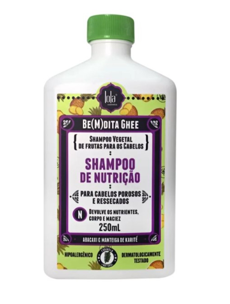 O Shampoo de Nutrição Be(M)dita Ghee Abacaxi, Girassol & Manteiga de Cacau Lola Cosmetics repõe os lipídios, oleosidade, umidade natural, vitalidade e corpo aos fios. Assim, elimina o aspecto poroso e ressecado dos cabelos.