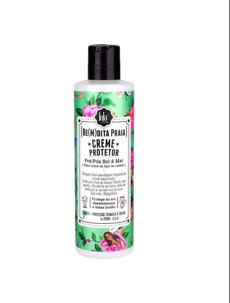 Be(m) Dita Praia Creme protetor capilar. Esse creme tem proteção térmica e proteção UVA e UVB, ajuda a combater os efeitos do sol e do mar, devolvendo maciez ao seu cabelo.