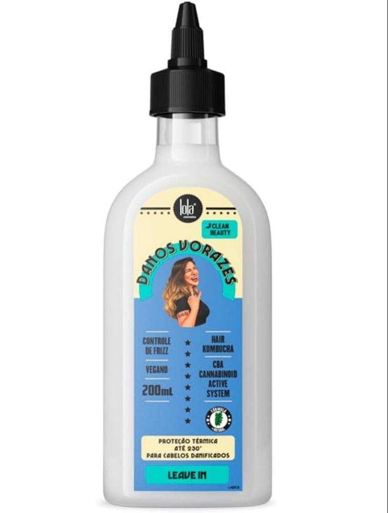 Leave-in para cabelos danificados. Lola Cosmetics Danos Vorazes promove controle do frizz, brilho e proteção térmica até 230°C.