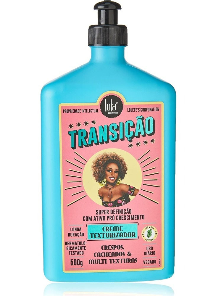 Creme texturizador para cabelos cacheados e crespos. Lola Cosmetics Transição auxilia a definição da textura natural dos fios durante o processo de transição capilar.