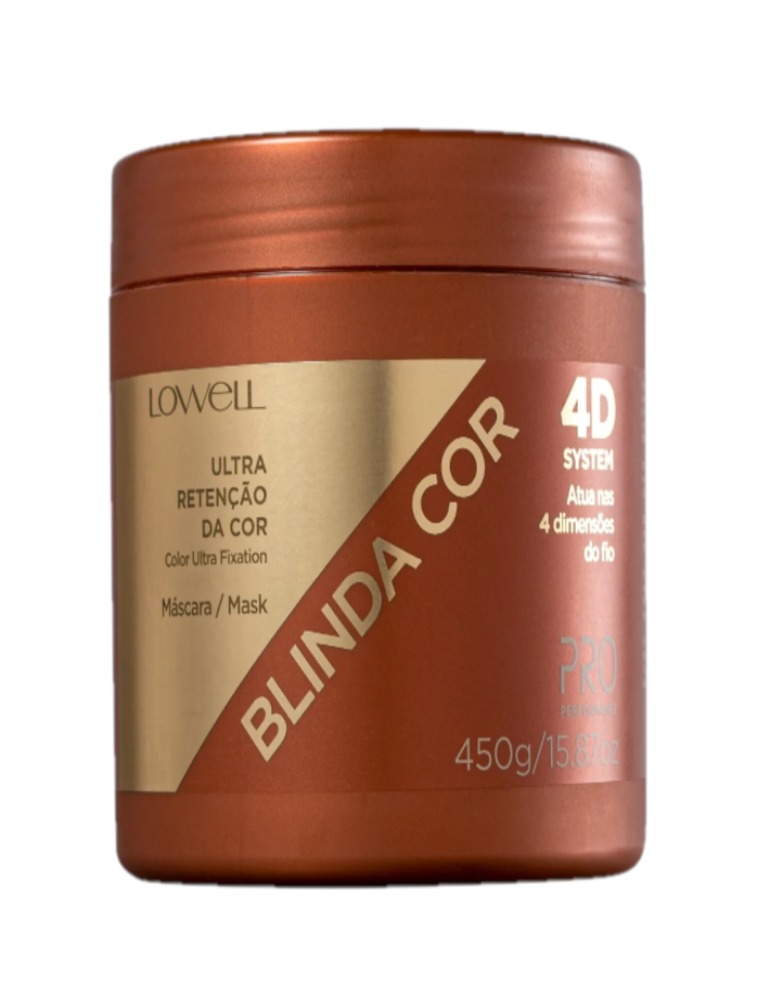 Máscara capilar para cabelos coloridos e descoloridos. Lowell Blinda Cor Pro Performance hidrata, evita o desbotamento e mantém a cor viva por mais tempo.