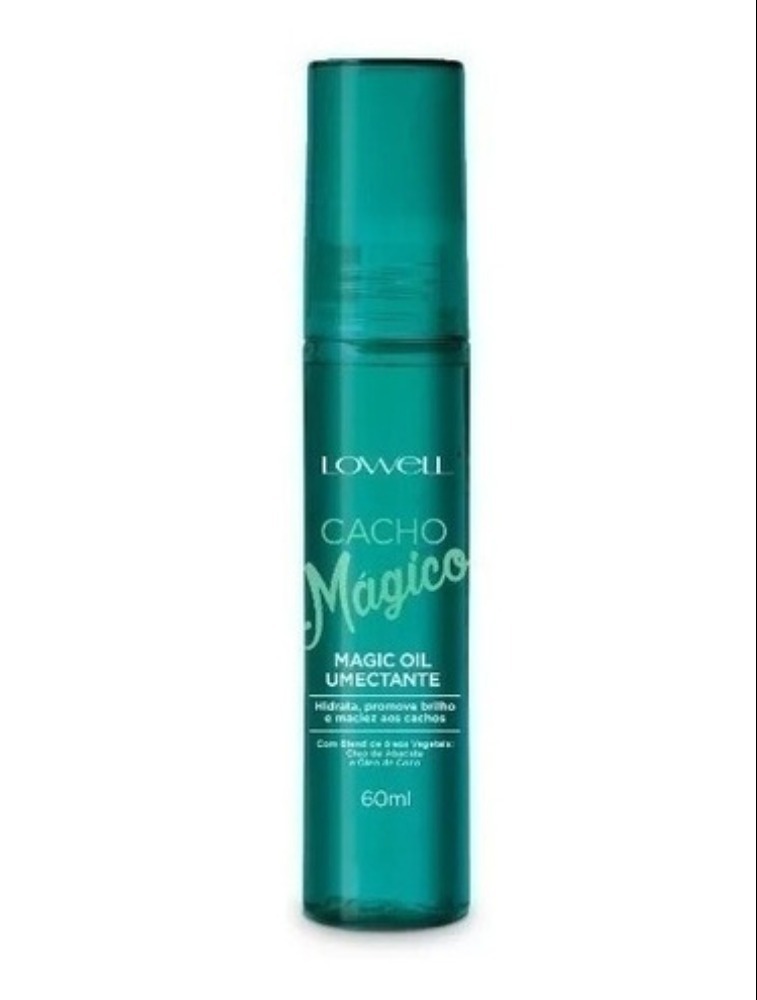 Óleo de tratamento para cabelos cacheados. Lowell Cacho Mágico Magic Oil Umectante hidrata e aumenta o brilho e a maciez enquanto ajuda a definir o formato dos fios.