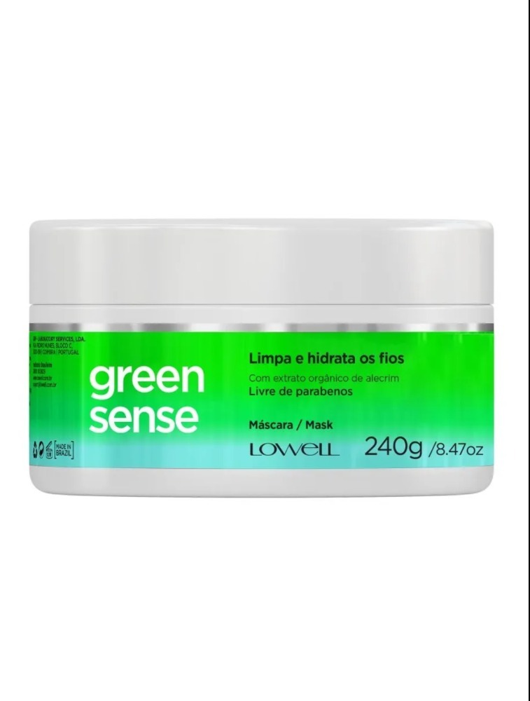 Máscara capilar para todos os tipos de cabelo. Lowell Green Sense conta com fórmula vegana e livre de parabenos, proporciona brilho e maciez.
