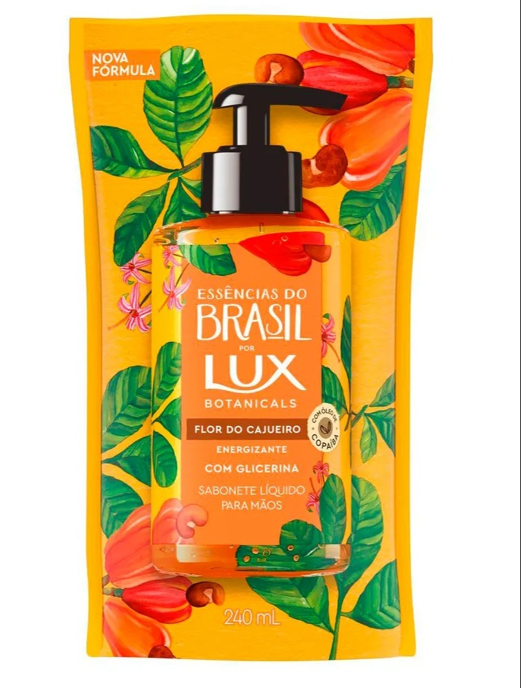 Conheça o refil de sabonete líquido Essências do Brasil por Lux Botanicals Flor do Cajueiro 240ml. Cada fragrância foi especialmente criada para revitalizar o seu corpo, mente e alma. A coleção, inspirada na exuberância da natureza do Brasil, foi baseada nos nossos rituais e tradições para transformar o seu momento de autocuidado em uma rotina de beleza diária. A fragrância da Flor do Cajueiro é sofisticada e marcante, com notas delicadas e cremosas de jasmim e osmanthus mescladas ao frescor de frutas amarelas. As fórmulas possuem óleo de copaíba com propriedades altamente hidratantes, além de conter vitamina E que ajuda a melhorar a maciez e elasticidade da sua pele. Experimente também os outros formatos da Flor de Cajueiro: sabonete líquido para as mãos e para o corpo em garrafa com poder antioxidante. Além disso, a marca possui outras opções de fragrâncias na linha: dama da Noite e Vitória régia. A nova coleção ?Essências do Brasil por Lux Botanicals? oferece formatos inéditos que trazem sensações e texturas únicas, assim como o produto tem uma nova embalagem econômica para você despejar o seu conteúdo em um frasco de Lux. Transforme a sua experiência de banho em um momento único e prazeroso com os benefícios dos sabonetes Essências do Brasil por Lux Botanicals."